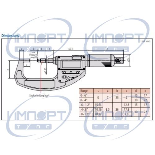 | Диапазон | 0 - 0.6 " |