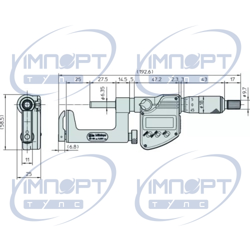 | Измерительный шпиндель | With spindle lock, ø6,35 mm, spindle pitch 0,5 mm |