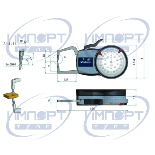 Внешний циферблатный штангенциркуль 0-0,4", 0,0002" 209-450 Mitutoyo
