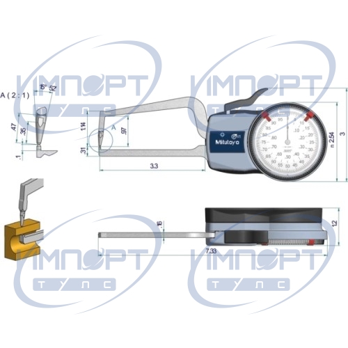 Внешний циферблатный штангенциркуль 0-0,8", 0,0005" 209-456 Mitutoyo